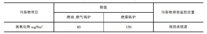表7 天津市在用鍋爐氮氧化物排放濃度限值(DB12/151-2016)