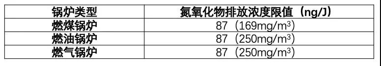 注:自2014年7月1日起新建鍋爐執行表2的排放限值。