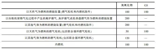 表14 使用氣體燃料的燃燒裝置NOX排放濃度限值(單位:mg/m3)